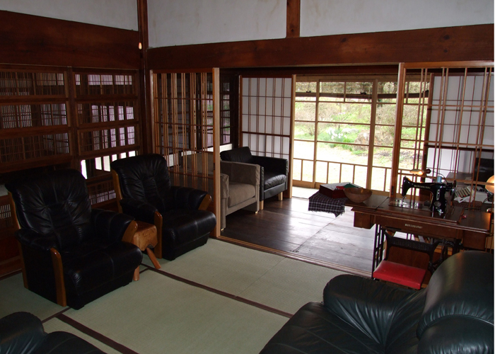 南向きの表居間。里山の風景と向かい合いゆったりとしたソファに腰をおろせば、吸い込まれるような心地よさ、誰もが己の時間をむかえその場を離れたくない思いに駆られる。いつしかボーンボーンと古時計の時を刻む音に気付くころ、DAYS WITHOUT YOU (Yayoi Yoshida)のピアノ曲が流れていたことに気付くことでしょう。