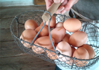 名古屋コーチン、ボリスブラウン(フランス産)、ハイラインソニア(アメリカ産)の十三羽と、番犬代わりに二羽のガチョウさんを、約50坪程の宅内の一部に放し飼い。この元気な卵が朝食の卵焼きとなります!実に美味しいふぁ~ふぁ~。朝早く起きて、たまご取りに行きますか?それとも出来上がりをいただきますか?